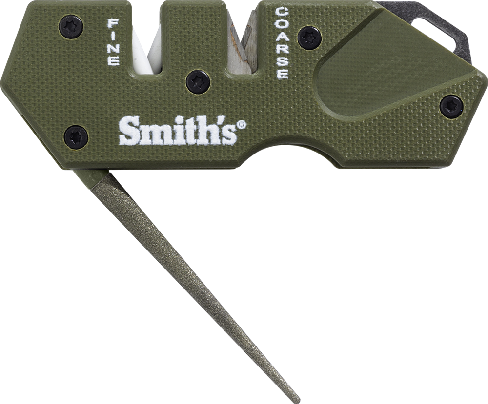 • PP1-Mini Tactical OD Green, wielofunkcyjna kieszonkowa ostrzarka Pocket Pal Knife Sharpener amerykańskiej firmy Smith's. Pozwala łatwo i sprawnie naostrzyć niemal każdy nóż kuchenny, myśliwski, wędkarski, EDC, drobne narzędzia i haczyki wędkarskie.