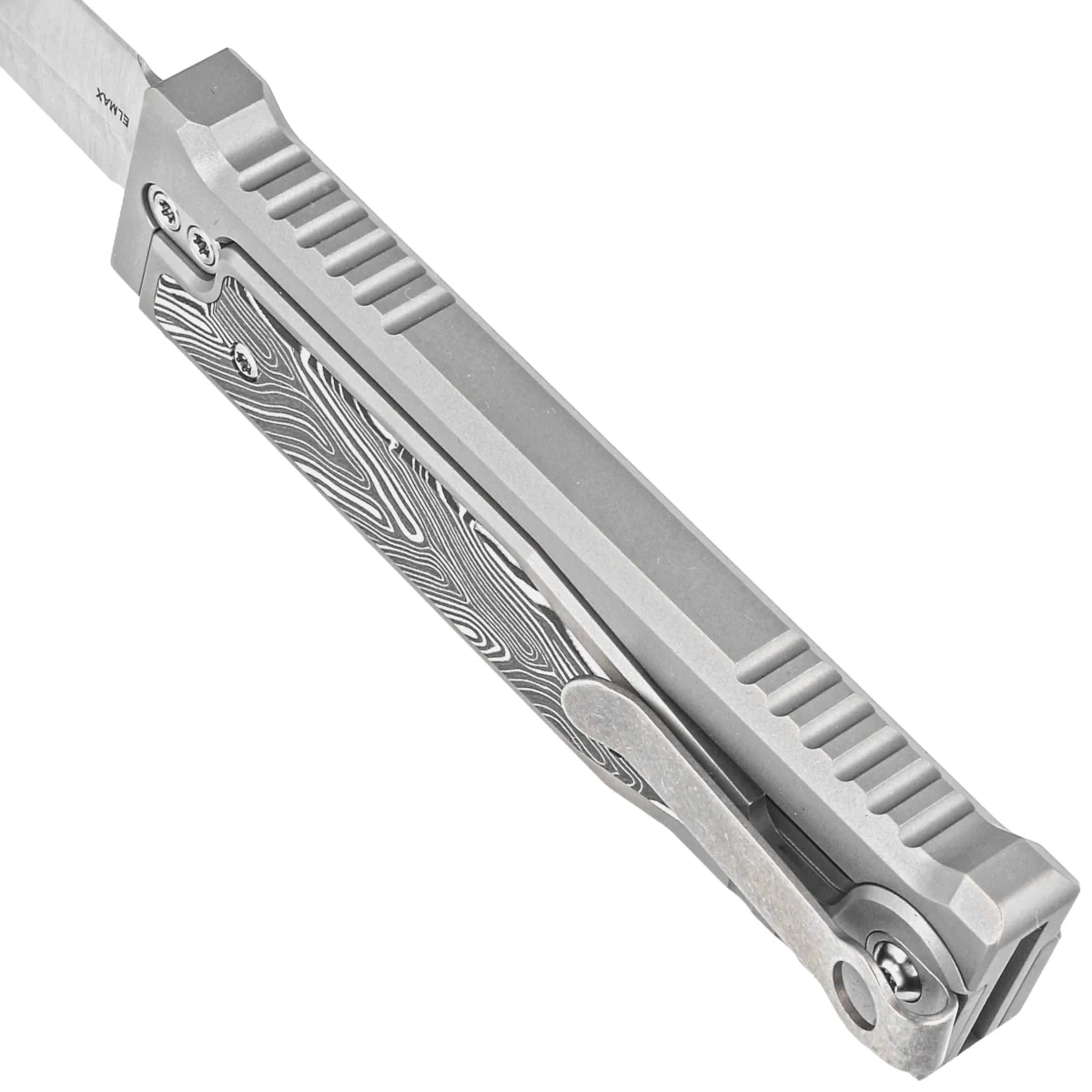 Nóż grawitacyjny Reate EXO-M OTF Gravity D/E Bead Blasted Titanium/Damascus Black-White G10, Satin Elmax