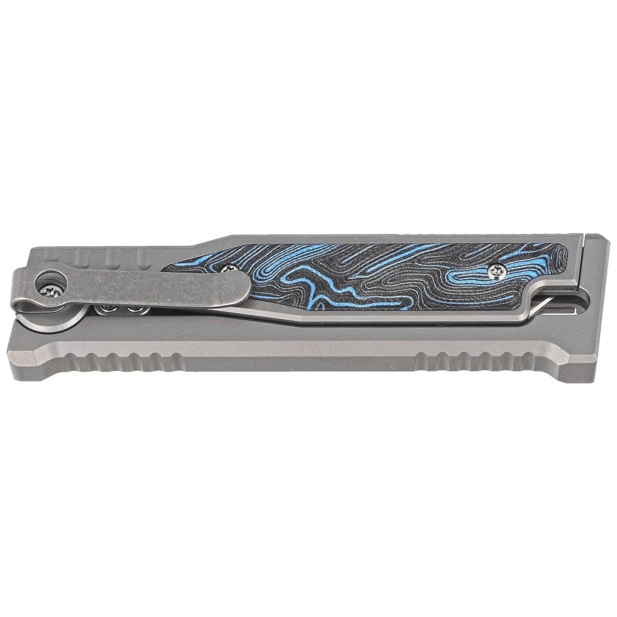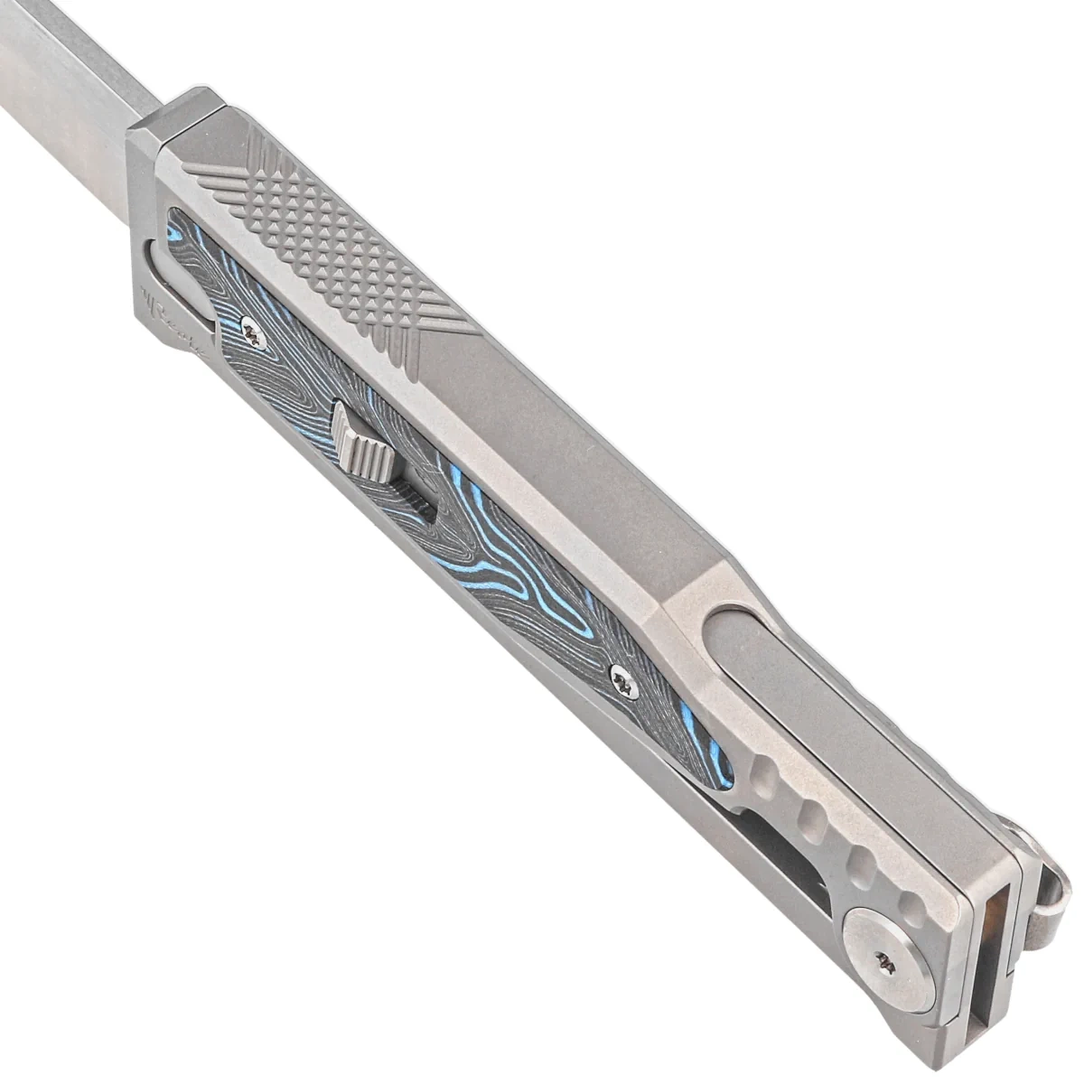 Nóż grawitacyjny Reate EXO-M OTF Gravity T/E Bead Blasted Titanium/Damascus Blue-Black G10, Satin Elmax