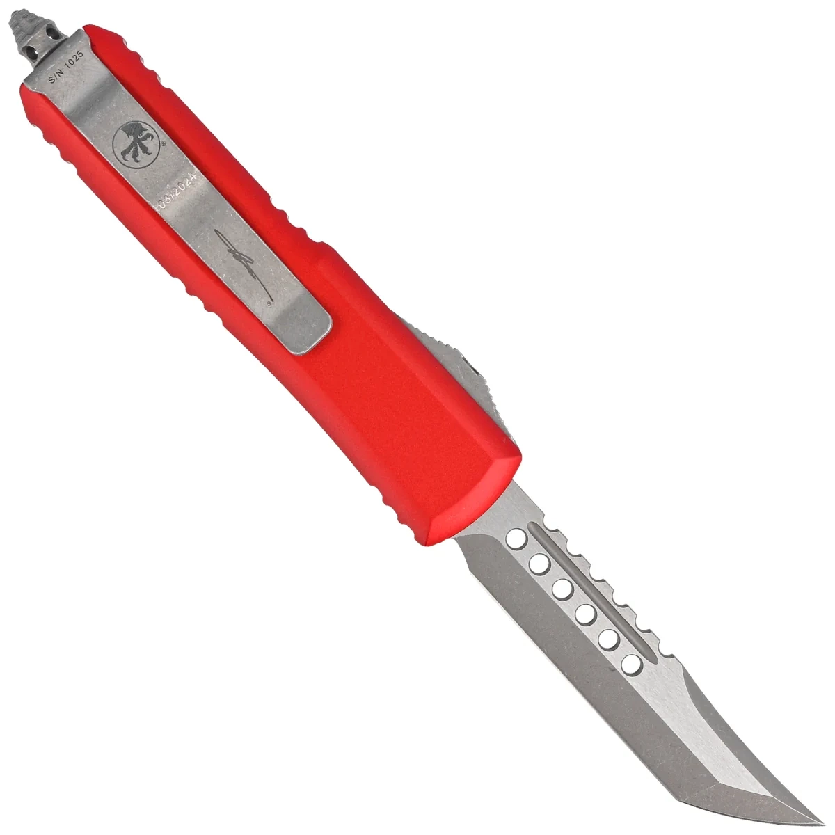 Nóż automatyczny OTF Microtech UTX-85 Hellhound T/E Signature Red Aluminium, Apocalyptic M390 (719-10APRDS)