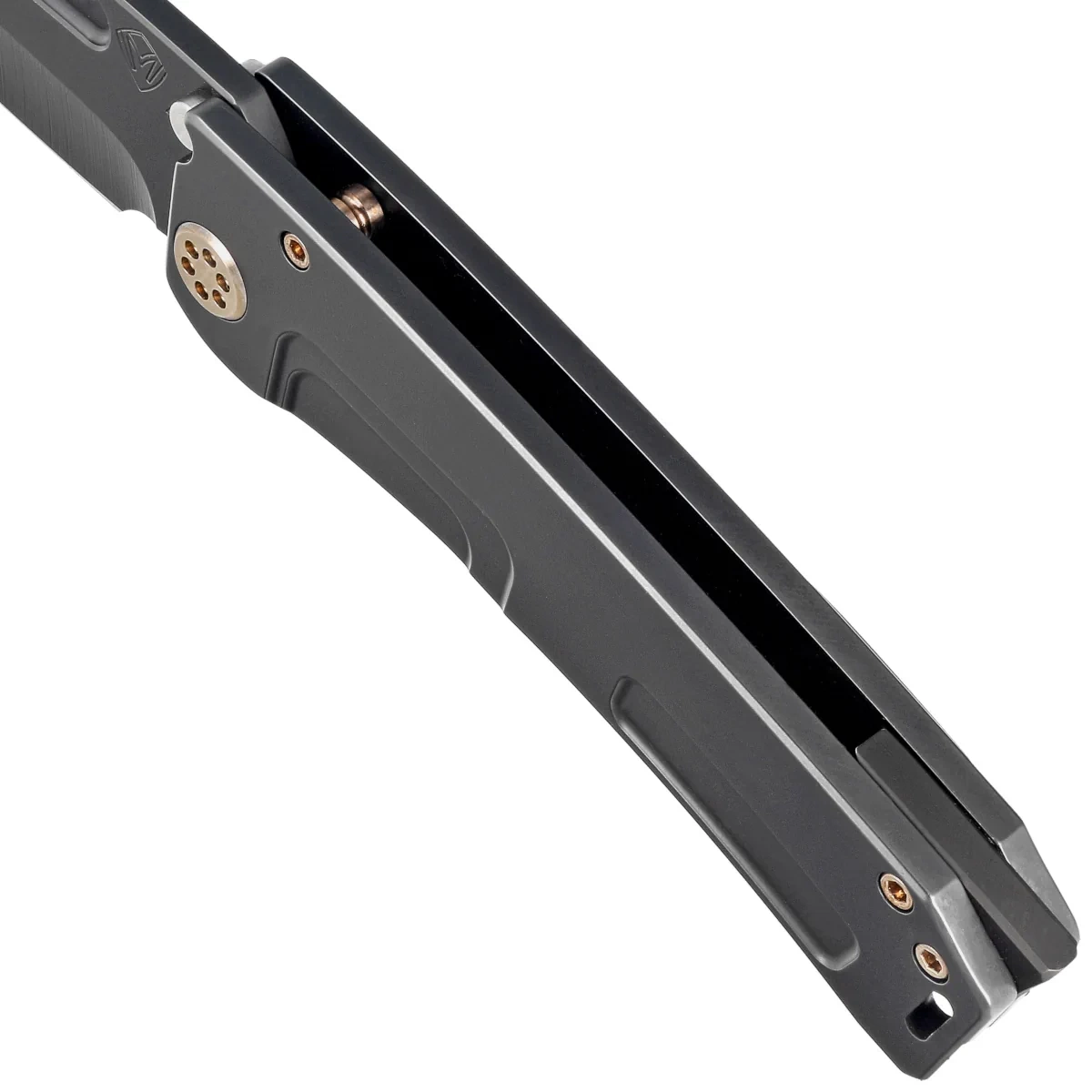 - Marauder-H Drop Point, DLC Handle, Bronze HW/Clip, PVD Breaker, DLC, duży, niezwykle mocny nóż składany zaprojektowany przez Grega Medforda z Medford Knife & Tool w hołdzie dla bombowca A-26 Marauder który był znany z niesamowitej siły ognia!