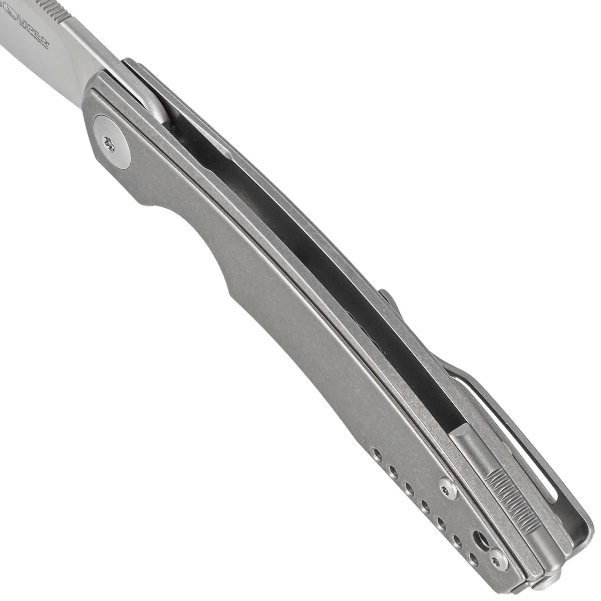 - Belone Stonewashed Titanium, Satin kształt wywodzący się z tradycyjnych noży włoskich. Zaprojektowany zgodnie z minimalistycznym stylem duńskiego knifemaker'a Jespera Voxnaesa. Lekki nóż ozdobiony wyrafinowanymi detalami!