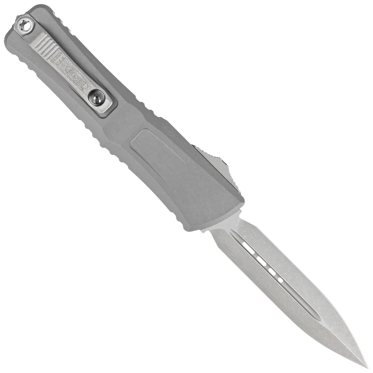 Combat Troodon Gen III D/E  Natural Clear Aluminium, Apocalyptic ten największy z noży automatycznych, to szczyt precyzyjnej inżynierii i taktycznej sprawności w dziedzinie noży OTF (Out The Front). Zbudowany z myślą o szerokim spektrum zastosowań użytkowych, może pochwalić się większym o 25% rozmiarem w porównaniu do flagowego Troodona. Precyzyjnie wykonany, wyposażony w wyrafinowany i piekielnie szybki mechanizm wysuwający ostre jak brzytwa ostrze. W 100% wyprodukowany i zmontowany w USA. Projekt Anthony'ego Marfione, knifemakera i właściciela Microtech Knives.