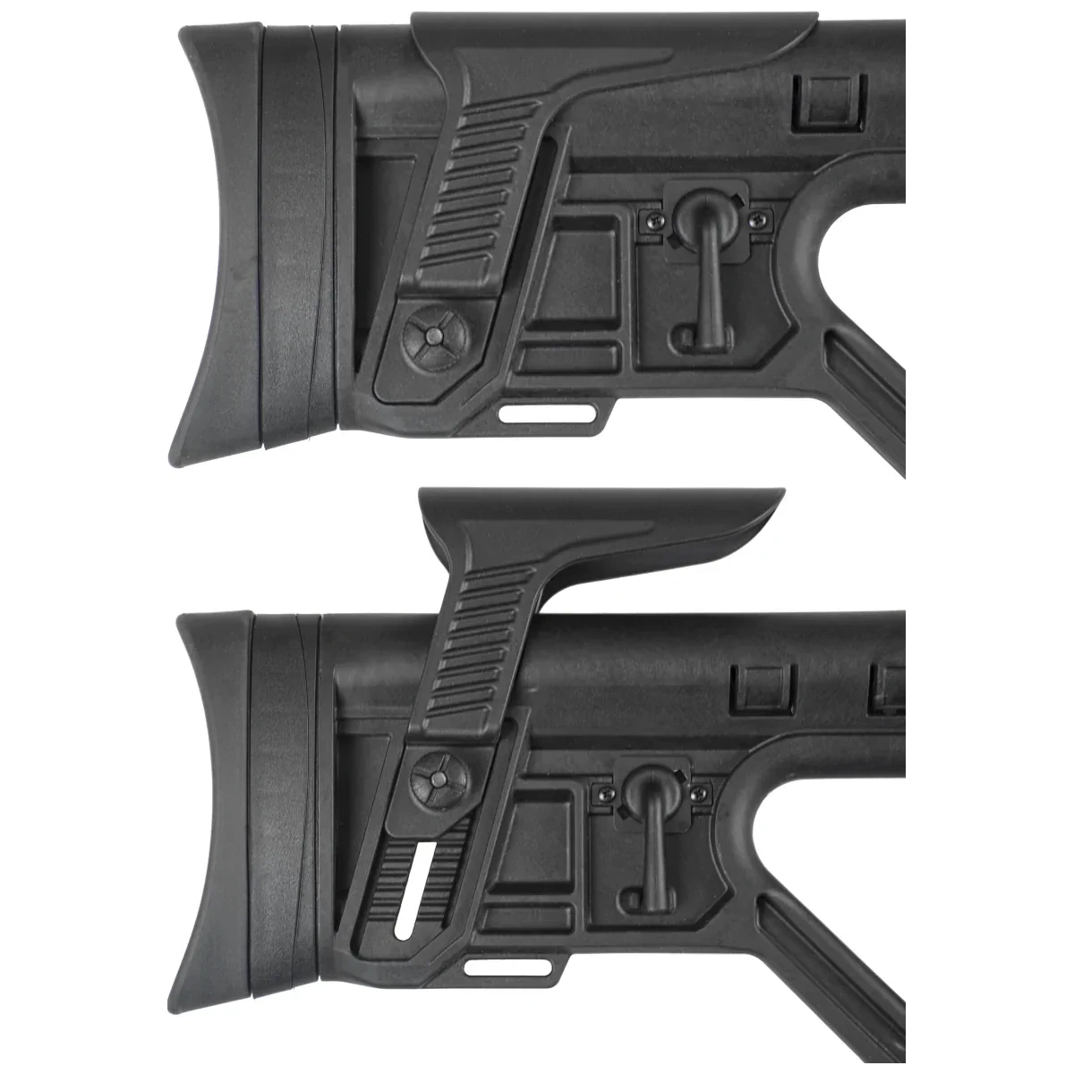 Osada - taktyczna z otworem na kciuk TH (Thumb Hole). Wstawki z miękkiej gumy na chwycie pistoletowym oraz ryflowana środkowa część łoża dla lepszej kontroli i wyczucia. Kolba przystosowana dla osób prawo i leworęcznych zakończona gumową stopką absorbuje energię odrzutu po oddanym strzale. Regulacja stopki w pionie (góra / dół) oraz na wysokość baki. Dzięki możliwości regulacji proces skonfigurowania wiatrówki zgodnie z własnymi preferencjami jak i stylem strzelania jest szybki i nieskomplikowany.