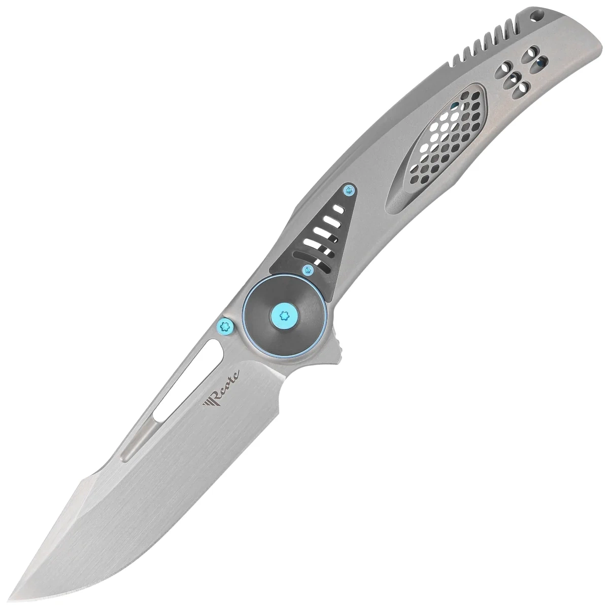 Opinie o Nóż składany Reate GTR Bead Blasted Titanium/Zirconium Inlay, HW Ti-Blue Clip, Hand Satin M390