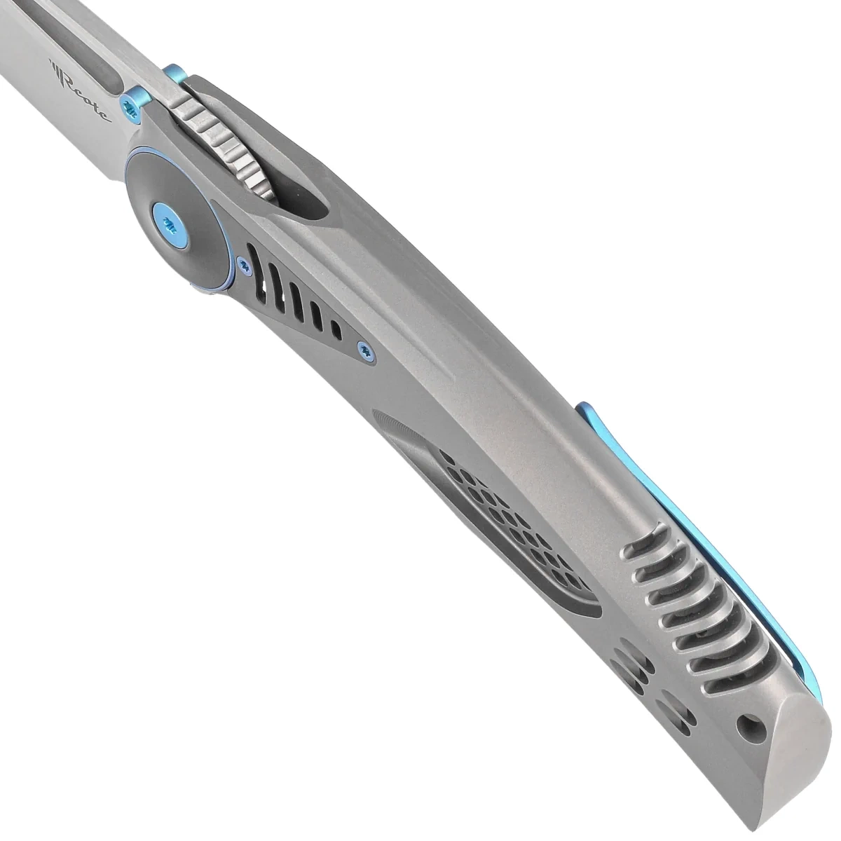 Nóż składany Reate GTR Bead Blasted Titanium/Zirconium Inlay, HW Ti-Blue Clip, Hand Satin M390