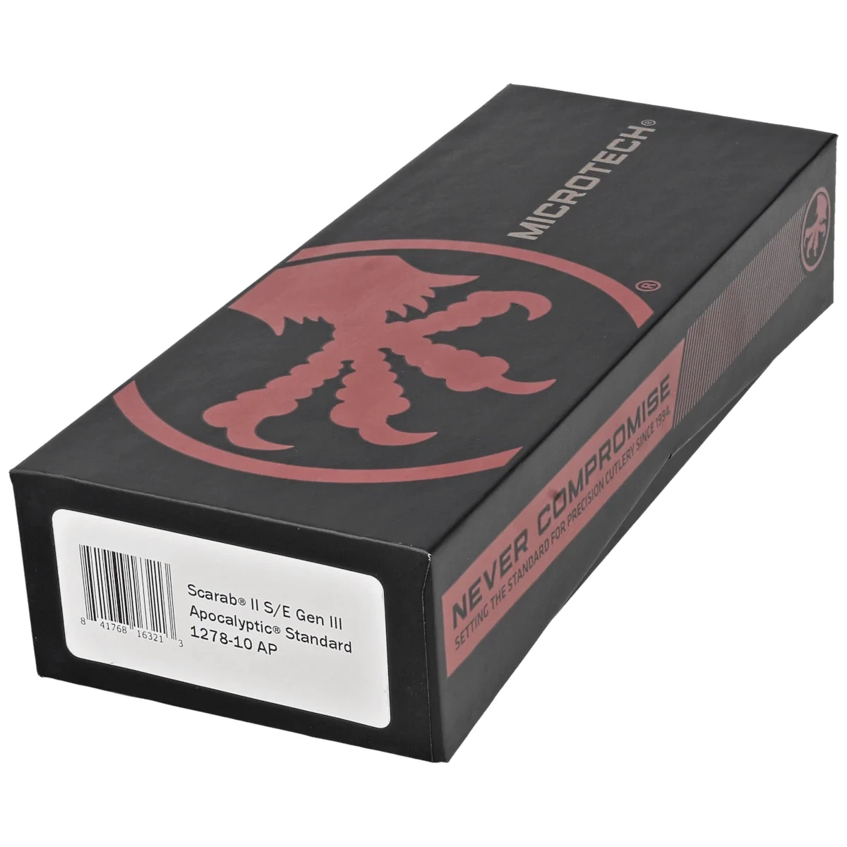 Scarab II Gen III S/E Black Aluminium/3M, Apocalyptic to szczyt doskonałości w dziedzinie automatycznych noży taktycznych, czerpiący inspirację z oryginalnego projektu Microtech Ultratech. Zbudowany, aby wytrzymać najtrudniejsze warunki, nowy Scarab II jest najlepszym wyborem do intensywnego użytkowania. Zachowując cechy stylistyczne swojego poprzednika, wyznacza nowy standard dla technologii OTF (Out The Front).