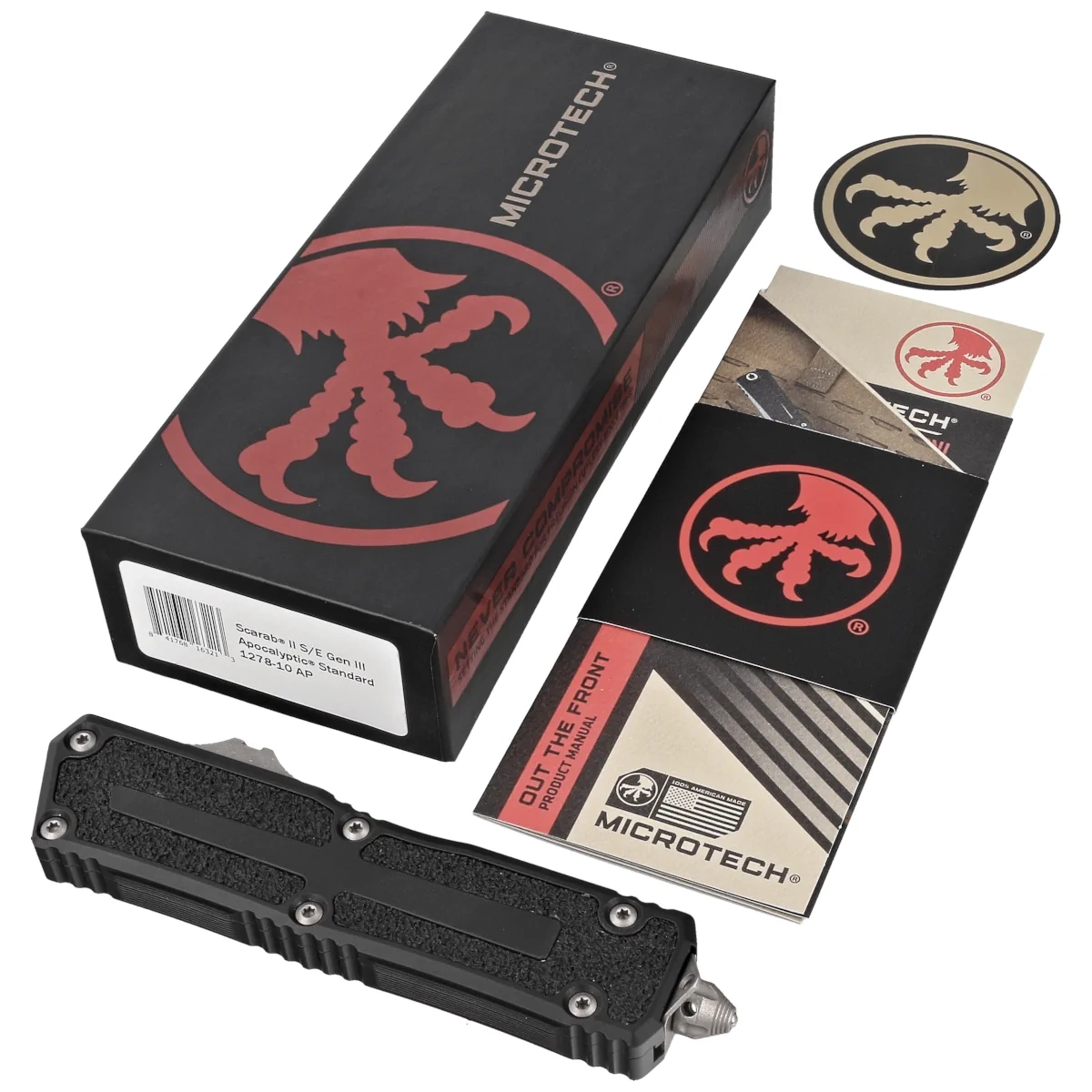 Nóż automatyczny OTF Microtech Scarab II Gen III S/E Black Aluminium, Apocalyptic M390MK by Tony Marfione (1278-10AP)