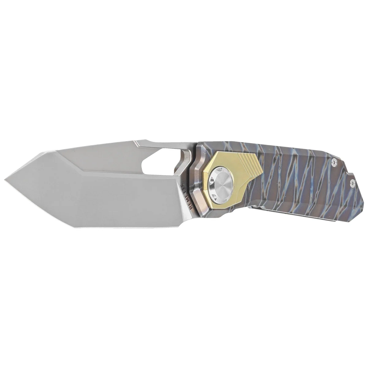 Opinie o Nóż składany Remette RT-Peregrine Falcon Tiger Stripe/Gold Titanium, Hand Grinding Pearlescent M390 (RTT1-C)