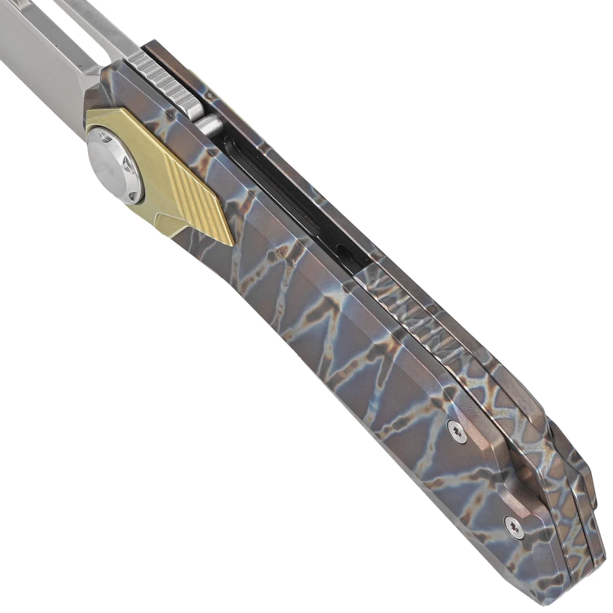 Nóż składany Remette RT-Peregrine Falcon Tiger Stripe/Gold Titanium, Hand Grinding Pearlescent M390 (RTT1-C)