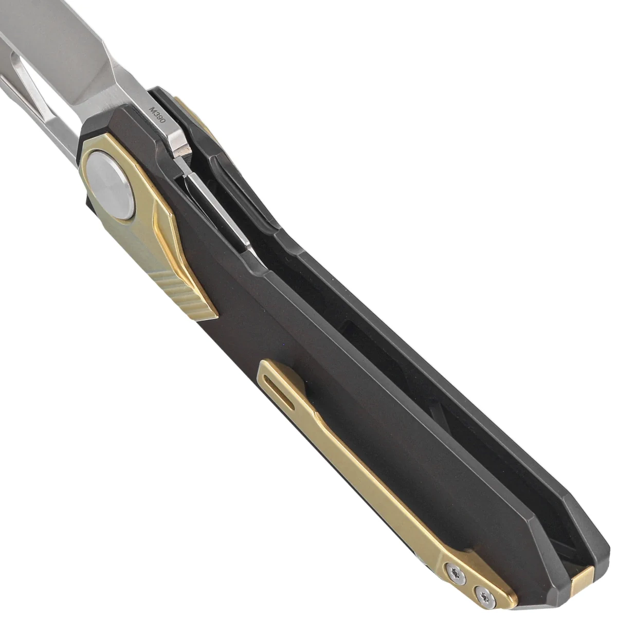 Nóż składany Remette RT-Peregrine Falcon Brown/Gold Titanium, Hand Grinding Pearlescent M390 (RTT1-B)