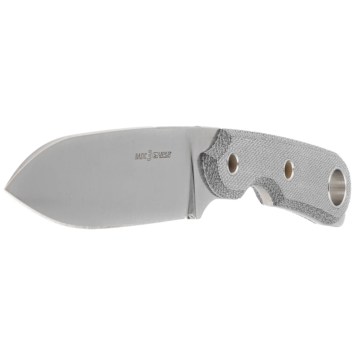 - Basic3 Black Canvas Micarta, Satin, projektu Tommaso Rumici. Solidny kawałek uznawanej za najlepszą stal na noże - MagnaCut, wielofunkcyjny nóż włoskiej marki Viper. Wygodna rękojeść z Micarty, pochwa z Kydexu z mocowaniem typu Tek-Lok.