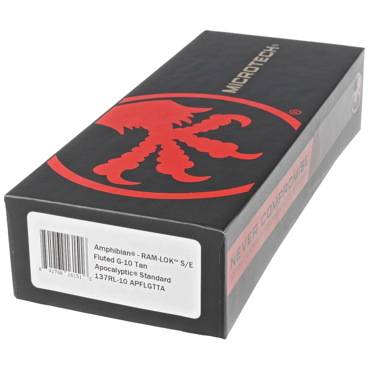 Nóż składany Microtech Amphibian Ram-Lok S/E Fluted Tan G10, Apocalyptic M390MK by Tony Marfione (137RL-10APFLGTTA)