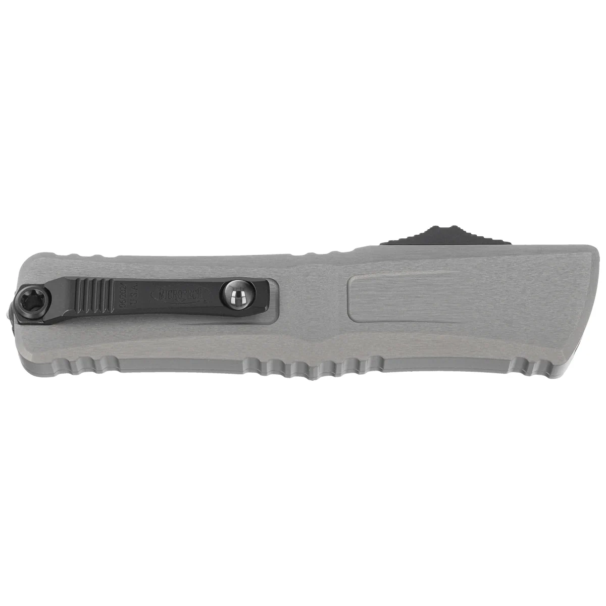 Rękojeść - wykonana z doskonałą precyzją w technologii 3D na frezarkach CNC, z polerowanego aluminium 6061-T6. Faktura powierzchni rękojeści oraz głębokie nacięcia (jimping) na niej sprawiają, że nóż nie ślizga się w dłoni podczas używania. Smukły profil oraz frezowany dwupozycyjny (prawa/lewa) masywny klips typu deep carry, umożliwiają dyskretne przenoszenie noża w kieszeni, w pozycji tip-down (czubkiem ostrza do dołu). Na klipsie znajduje się logo Microtech, numer seryjny i data produkcji. Rękojeść zakończono zbijakiem do bicia szyb, masywny stalowy trójkąt, w który wprasowano kulkę z węglika wolframu. Znajduję się w nim również otwór do przeplecenia linki ozdobnej.
