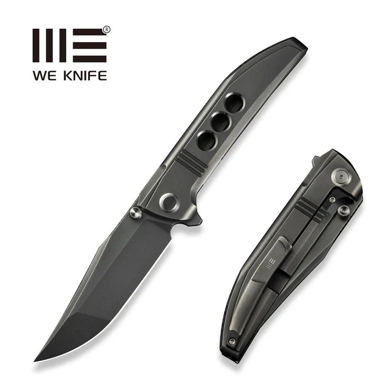 - Ezinta Polished Gray Titanium, Polished Gray duży nóż składany EDC z manufaktury WeKnife. Długa głownia typu clip point wykonana ze stali Böhler M390, monolityczna rękojeść frezowana z jednego bloku tytanu. Doskonały chwyt całą ręką dwa sposoby otwierania