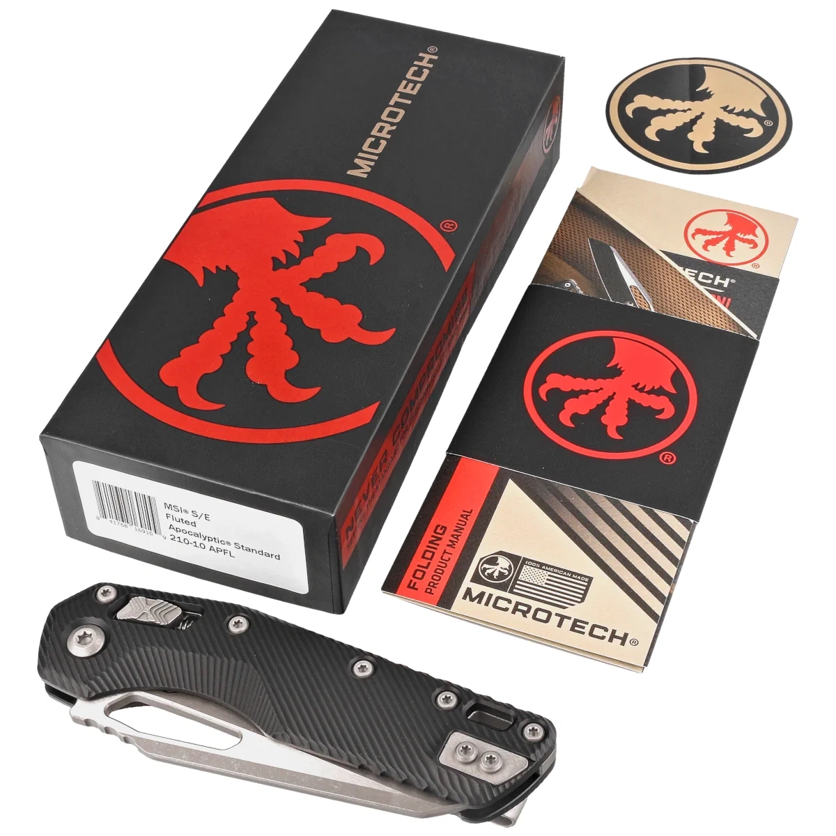 - MSI S/E Fluted Black Aluminium, Apocalyptic mocny nóż składany z intuicyjną blokadą RAM-Lock. Doskonała stal ostrza M390MK, efekt współpracy inżynierów firm Microtech i Bohler. Ergonomiczna rękojeść z aluminium. Projekt Anthony Marfione z Microtech!