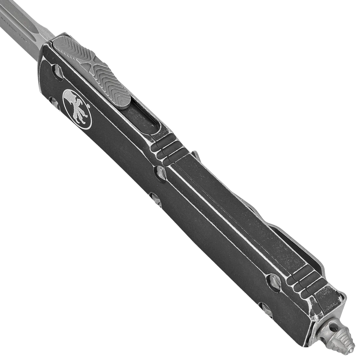 - Ultratech T/E Distressed Black Aluminium, Apocalyptic to pełnowymiarowy nóż OTF z serii Ultratech. Pracujący w trybie D/A, wyposażony w piekielnie szybki mechanizm wysuwający ostrze. Postarzana rękojeść z anodyzowanego aluminium. Projekt Tony Marfione.