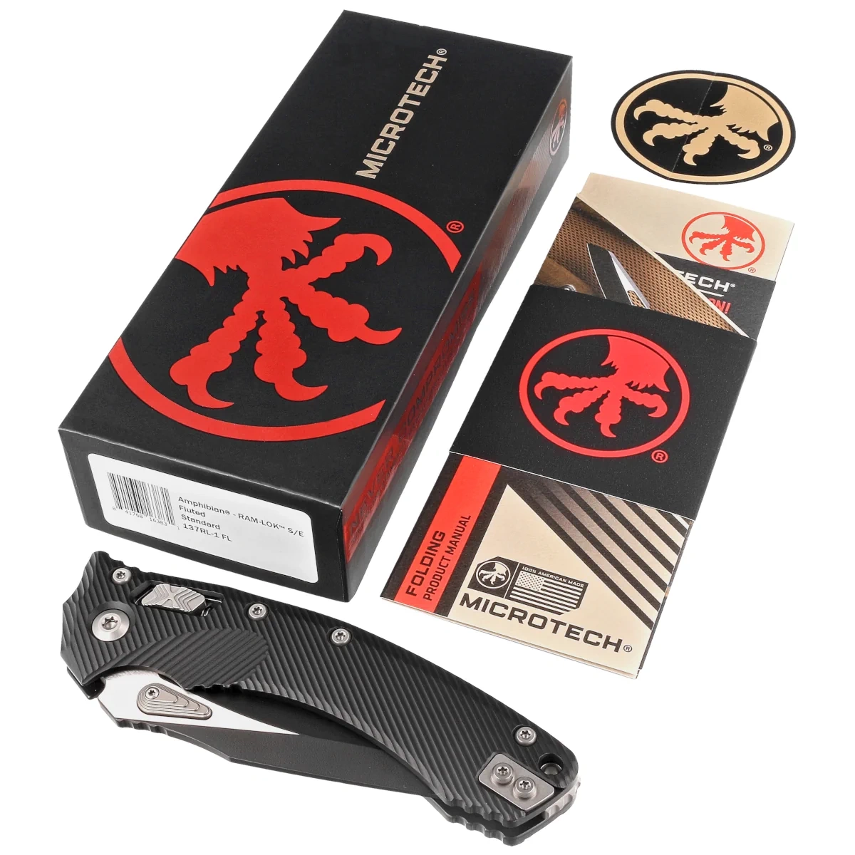 Nóż składany Microtech Amphibian Ram-Lok S/E Black Fluted Aluminium, Black M390MK by Tony Marfione (137RL-1FL)
