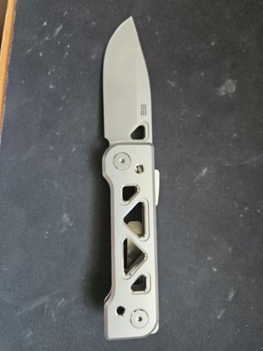 Rękojeść - grube kawałki litego tytanu w których dla zmniejszenia wagi wykonano kilka otworów. Dla kontrastu otwory zostały wykończone satynowaniem. Okładziny zostały przykręcone do tytanowego backspacera. Prostota i solidność konstrukcji dają pewność wieloletniego użytkowania. Klips wielopozycyjny (prawa/lewa) wykonany z tytanu, umożliwia przenoszenie noża w pozycji tip-up i tip-down. Wystający fragment backspacera zawiera lanyard hole czyli otwór do przewleczenia linki zabezpieczającej lub ozdobnej.