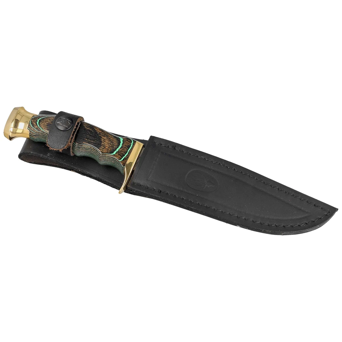 Rękojeść - wykonana z drewna pakka (laminat) barwionego na zielono. Profilowana rękojeść eliminuje ostre krawędzie dla wygody uchwytu. Ozdobny pin z logo firmy dodaje tradycyjnego wyglądu. Garda i głowica wykonane z mosiądzu.
