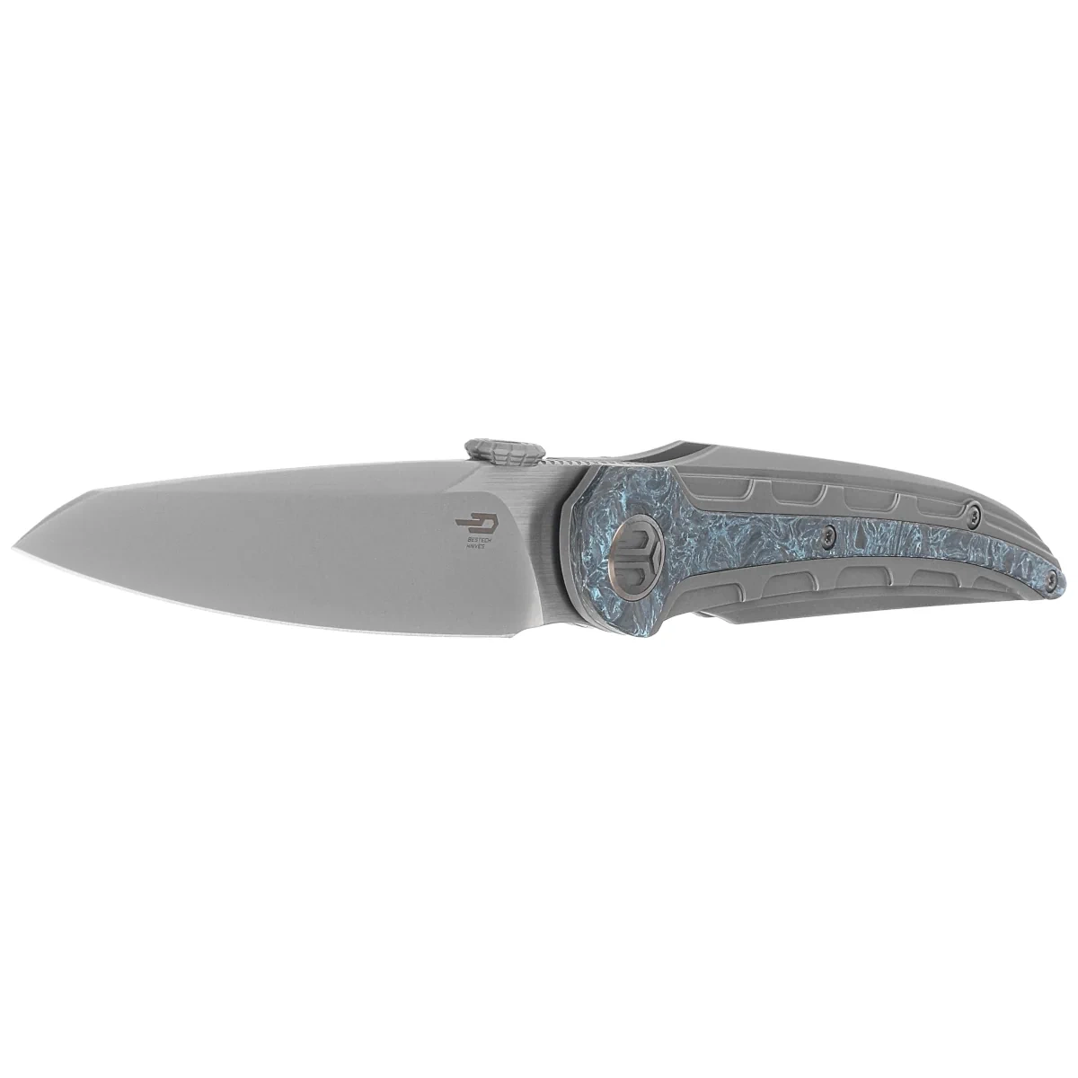 Nóż składany Bestech Prydwen Dark Grey Titanium/Blue Marbled Carbon Fiber, Bead Blasted/Satin MagnaCut by Kombou (BT2409C)