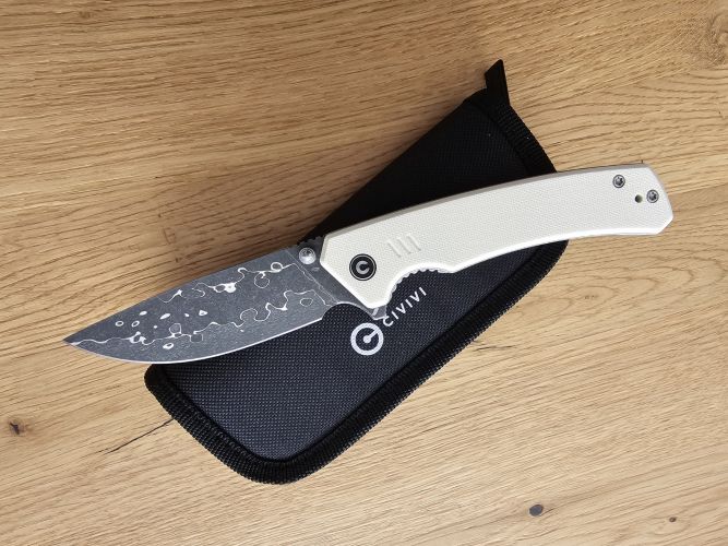- Merit Ivory G10, Damascus, kompaktowy folder EDC renomowanej firmy Civivi. Głownia ze stali nierdzewnej Damascus, ergonomiczna rękojeść z szorstkiego kompozytu G10. Doskonałe narzędzie do noszenia na co dzień, niezawodne i trwałe!