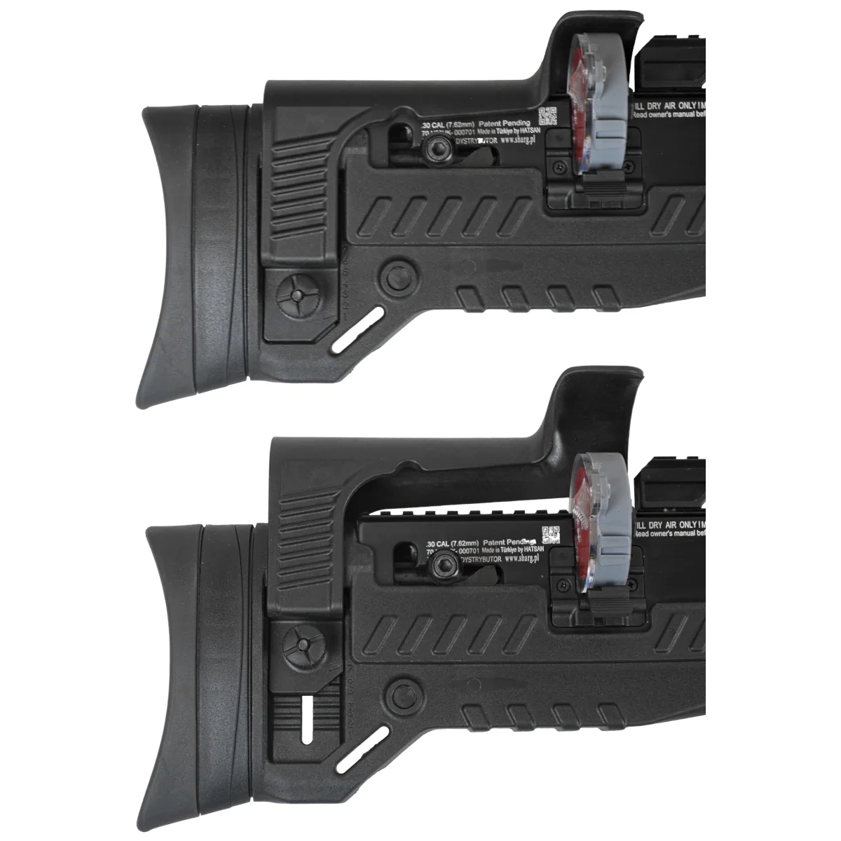 Osada - taktyczna typu bullpup z otworem na kciuk TH (Thumb Hole). Wstawki z miękkiej gumy na chwycie pistoletowym oraz ryflowana środkowa część łoża dla lepszej kontroli i wyczucia. Kolba przystosowana dla osób prawo i leworęcznych zakończona gumową stopką absorbuje energię odrzutu po oddanym strzale. Regulacja stopki w pionie (góra / dół) oraz na wysokość baki. Dzięki możliwości regulacji proces skonfigurowania wiatrówki zgodnie z własnymi preferencjami jak i stylem strzelania jest szybki i nieskomplikowany.