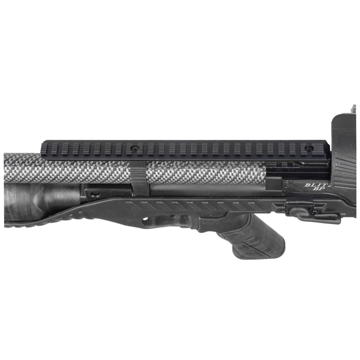 Szyna montażowa - podwójna 11 mm / 22 mm, pozwala na montaż dowolnego celownika optycznego. Zgodna ze standardem MIL-STD 1913 (zwana picatinny lub weaver). Dodatkowe trzy szyny picatinny.