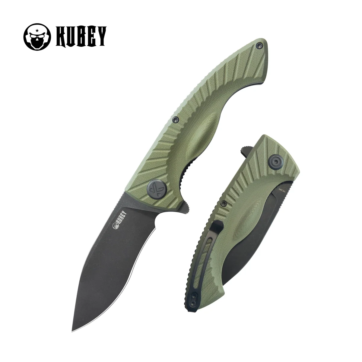 - Timberwolf Green G10, Blackwashed znakomity folder EDC firmy Kubey. Użytkowa głownia inspirowana kształtem kukri ze stali Sandvik 14C28N. Ergonomiczna, teksturowana rękojeść z kompozytu G10. Popularna blokada Liner Lock zabezpiecza nóż przed złożeniem.
