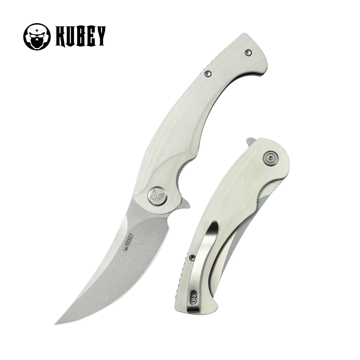 Nóż składany Kubey Scimitar KU173I White G10, Bead Blasted 14C28N