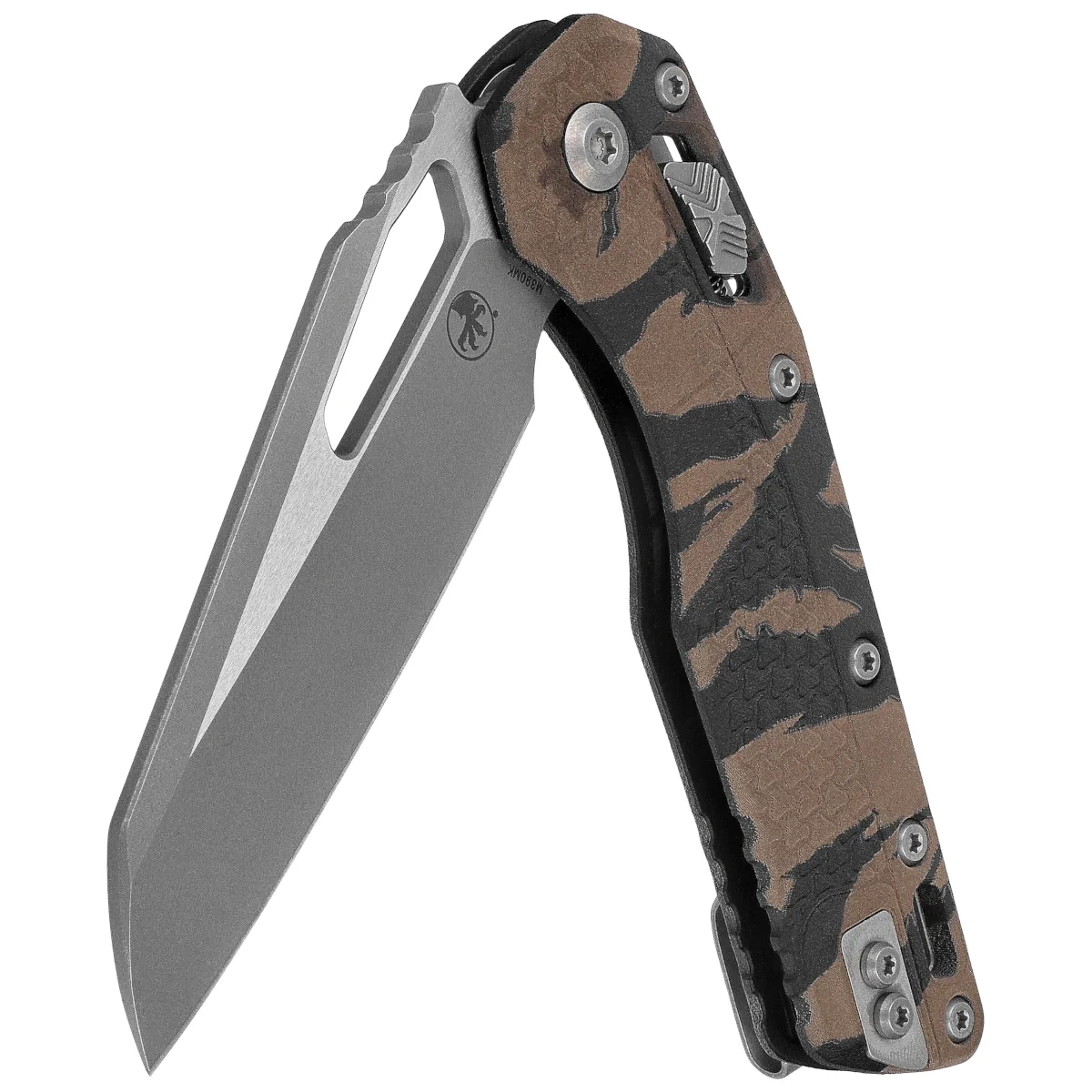 MSI S/E Ram-Lok Tiger Stripe Camo Tri-Grip Polymer, Apocalyptic nóż składany, łączący w sobie siłę, wytrzymałość i elegancję. Jego ostrze wykonane jest z doskonałej stali M390MK, która jest wynikiem współpracy dwóch renomowanych firm - Microtech i Böhler. Stal ta jest znana ze swojej wyjątkowej wytrzymałości i długiego trzymania ostrości, dzięki czemu ten nóż nie boi się żadnych wyzwań. Intuicyjna blokada RAM-Lok zapewnia bezpieczeństwo podczas użytkowania. Ta innowacyjna blokada jest łatwa w obsłudze i zapewnia łatwość obsługi osobom prawo jak i leworęcznym. Rękojeść noża wykonana z polimeru, wytrzymała i ergonomiczna. Jej kształt został zaprojektowany tak, aby idealnie pasować do dłoni, co zapewnia komfort nawet podczas długotrwałego użytkowania. Ten nóż to nie tylko narzędzie, ale także dzieło sztuki użytkowej. Jego projektant, Anthony Marfione, założyciel i właściciel firmy Microtech, zadbał o każdy szczegół. Od eleganckiego czarnego wykończenia po satynowe detale, ten nóż jest zarówno piękny jak i praktyczny. Bez względu na to, czy szukasz niezawodnego narzędzia, czy eleganckiego dodatku, folder MSI (Microtech Standard Issue) spełni Twoje oczekiwania.