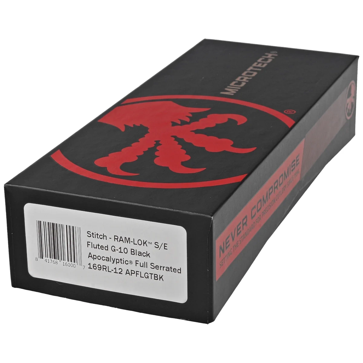 Stitch Ram-Lok S/E Black Fluted G10, Apocalyptic F/S manualna wersja śmiałego projektu wszechstronnego noża taktycznego, efekt współpracy Sebastijana Berenji i firmy Microtech. Szeroka głownia i prosta, wygodna w każdym chwycie rękojeść dają mocny nóż taktyczny wykonany z dbałością o najdrobniejsze szczegóły i z najlepszych materiałów. Wierny towarzysz, który nigdy nie zawiedzie