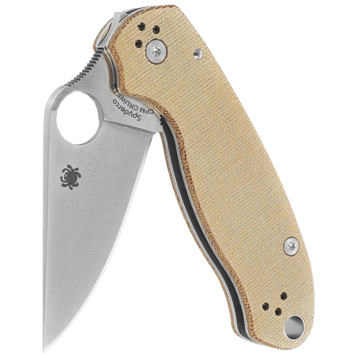 - Para 3 Brown Canvas Micarta, Satin CruWear kompaktowy folder EDC zaprojektowany przez Sala i Erica Glesserów, uznawany za jeden z najlepszych na świecie. Ostrze z elitarnej stali CPM CruWear, okładki z wytrzymałego kompozytu Micarta.
