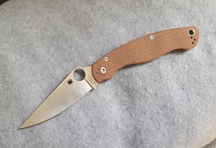 Nóż składany Spyderco Military 2 Brown Canvas Micarta, Satin Cru-Wear by Sal i Eric Glesser (C36MPCW2)