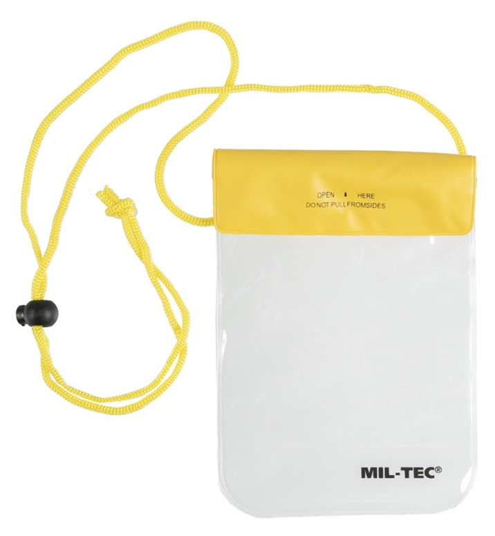 Etui wodoodporne Mil-Tec – szczelna osłona na cenne przedmioty, idealna podczas spływów kajakowych, rejsów i podróży w deszczowych warunkach. Skutecznie chroni telefon, dokumenty, pieniądze oraz inne drobne akcesoria przed wodą, kurzem i piaskiem.