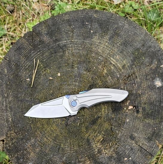 Rękojeść - okładziny z tytanu 6AL4V, materiału niezwykle wytrzymałego mechanicznie i praktycznie całkowicie odpornego na warunki atmosferyczne i działanie chemikaliów. Całość skręcona do solidnego backspacera, również wykonanego z tytanu 6AL4V. Prosta, solidna konstrukcja daje pewność wieloletniego użytkowania. Podcięcie na palec (fore finger groove) poprawia pewność uchwytu i tworzy mini-gardę zapobiegając ześlizgnięciu się dłoni na ostrze. Oś pivota zdobi stylizowane logo producenta. Jednopozycyjny (prawa) tytanowy klips deep carry pozwala przenosić dyskretnie nóż w kieszeni w pozycji tip-up (czubkiem ostrza do góry).