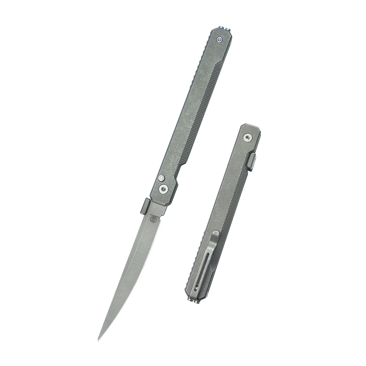 Prism Gray Titanium, Darkwashed to dyskretny folder codziennego użytku. Zaprojektowany przez Yuze Zhonga, łączy minimalistyczną estetykę z najwyższą jakością wykonania. Klinga o smukłym profilu została wykonana z uznawanej za jedną z najlepszych stali na noże Böhler M390, hartowanej próżniowo i poddanej kriogenicznemu procesowi stabilizacji. Dzięki temu ostrze uzyskało wyjątkową odporność na ścieranie oraz długotrwałą retencję krawędzi tnącej. Rękojeść z tytanu o matowym, piaskowanym wykończeniu, zapewnia pewny chwyt niezależnie od sytuacji. Jej ergonomiczny kształt harmonijnie dopasowuje się do dłoni, umożliwiając pełną kontrolę nad ostrzem. Mechanizm blokady button lock działa płynnie, gwarantując szybkie i niezawodne blokowanie klingi. Prism to wyważone połączenie estetyki i funkcjonalności – niezawodne narzędzie, które zachwyca zarówno precyzją wykonania, jak i subtelną elegancją.