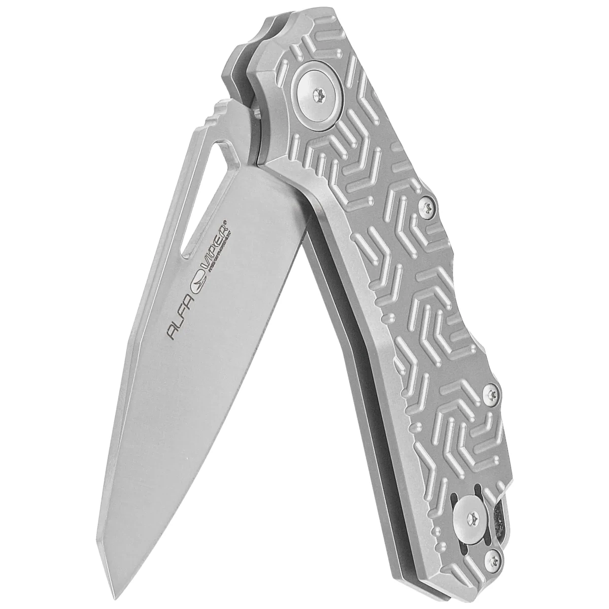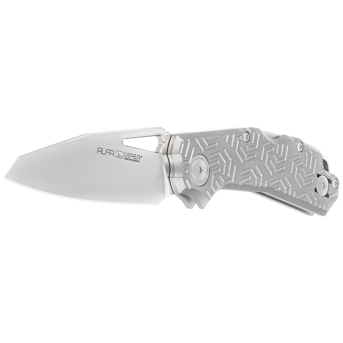 - Alfa Gray Titanium, Satin mocny, podręczny folder zaprojektowany przez Simone Tonolliego. Głownia o profilu sheepsfoot z doskonałej stali CPM MagnaCut, rękojeść z tytanu. Prosta i pewna blokada back lock. Doskonałe narzędzie!