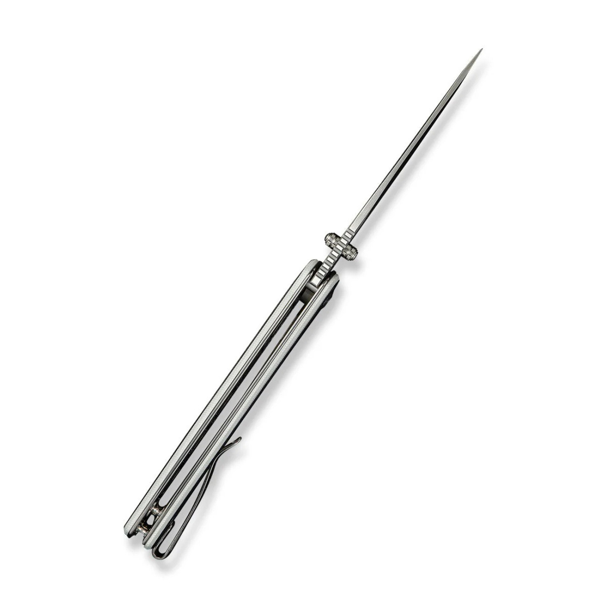 Głownia - typu Clip Point, wykończona eleganckim satynowaniem. Niewielka grubość klingi w połączeniu z wysokim, wklęsłym szlifem daje doskonałą geometrię krawędzi tnącej oraz ekstremalną wydajność cięcia. Ceramiczne łożyska kulkowe wspomagają płynną pracę mechanizmu otwierającego klingę, którą można otworzyć za pomocą płetwy flippera. Po otwarciu płetwa tworzy mini-gardę zapobiegającą ześlizgnięciu się dłoni na ostrze. Nóż można również otworzyć przy pomocy obustronnego kołka w klindze. Na grzbiecie klingi upper jimping, karbowane oparcie pod kciuk. Całość blokowana jest solidną blokadą liner lock.