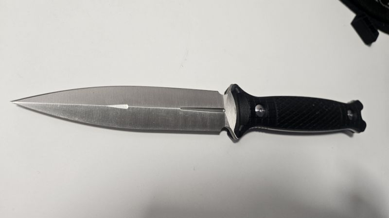 - Perfrico Black G10, Satin sztylet z militarnym designem. Jednostronnie ostrzona głownia ze stali nierdzewnej Sandvik 14C28N. Głęboko moletowana rękojeść z wytrzymałego kompozytu G10, pochwa z kydexu z wielopozycyjnym mocowaniem typu Tek-Lok.