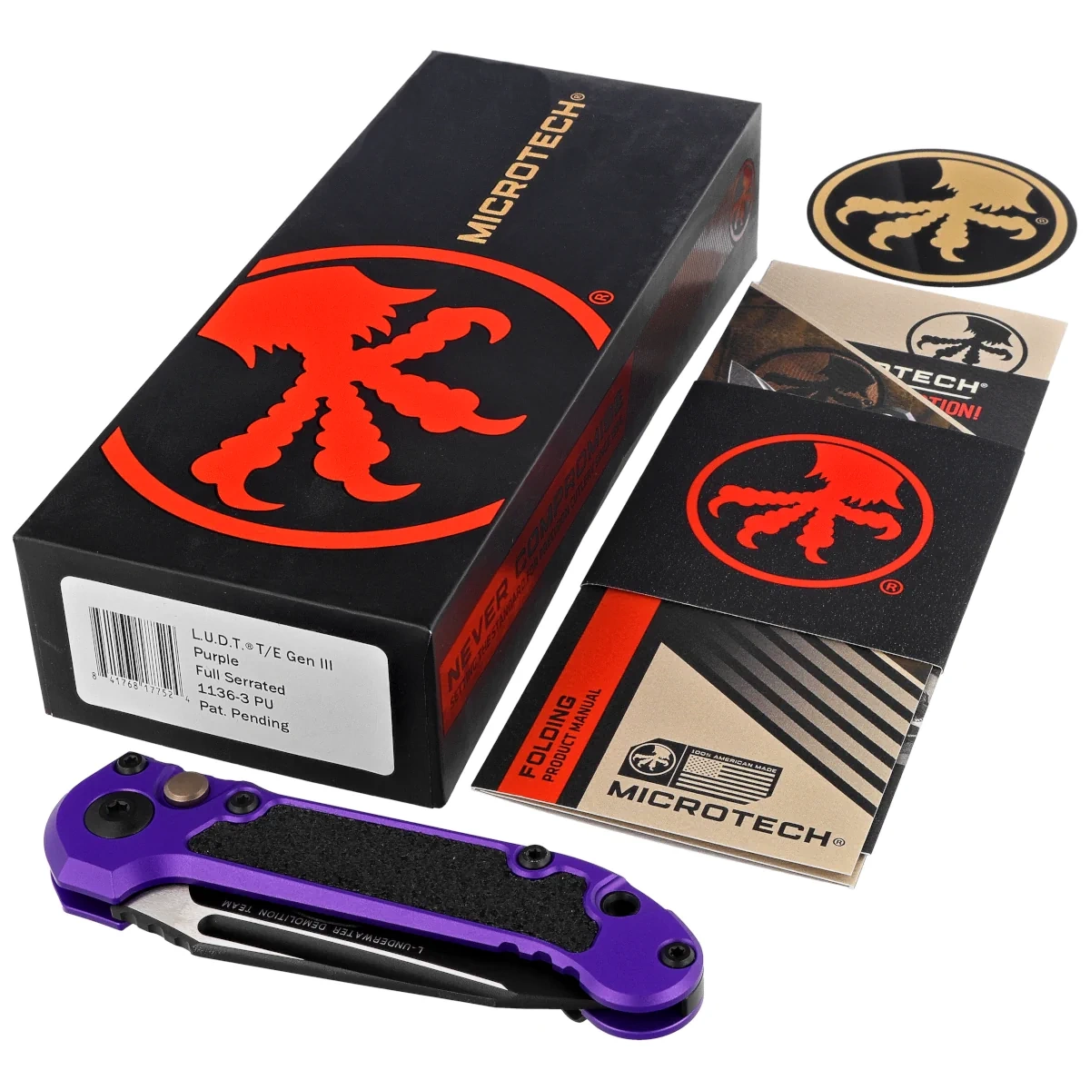 Nazwa produktu: L.U.D.T.® Gen III T/E Purple Aluminum / 3M Inserts, Black Full Serrated Standard