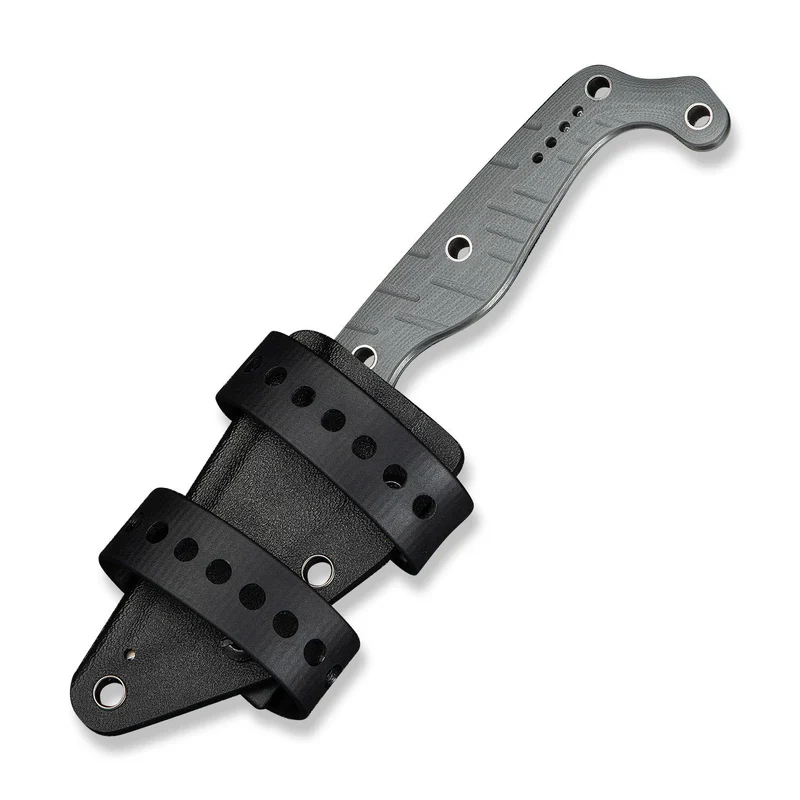 Rękojeść - wykonana z wytrzymałego kompozytu G10, znanego z odporności na warunki terenowe i znakomitej przyczepności. Teksturowana powierzchnia wspomaga chwyt w rękawicach lub mokrej dłoni, a ergonomiczne profilowanie zwiększa komfort użytkowania przy dłuższej pracy. Grubość 9 mm zapewnia stabilność chwytu, a otwór na linkę pozwala na zamocowanie paracordu lub dodatkowe zabezpieczenie. Wyposażona w obustronny klips, który umożliwia różne konfiguracje noszenia. W zestawie znajduje się pochwa z Kydexu – odporna na zużycie, pogodę i wilgoć, z paskami umożliwiającymi troczenie do pasa. Ta rękojeść to idealne połączenie funkcjonalności, trwałości i komfortu, stanowiące niezawodną bazę dla użytkowników poszukujących niezawodnego noża z głownią stałą.