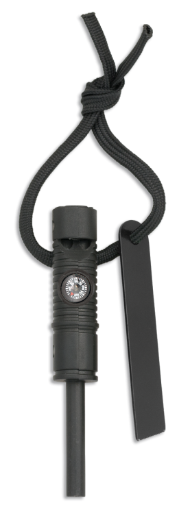 - Barbaric Fire Starter Black z gwizdkiem i kompasem – kompaktowe krzesiwo magnezowe z 6 mm prętem, stalową iskrownicą, gwizdkiem alarmowym i kompasem. Niezawodne narzędzie survivalowe do rozpalania ognia w każdych warunkach.