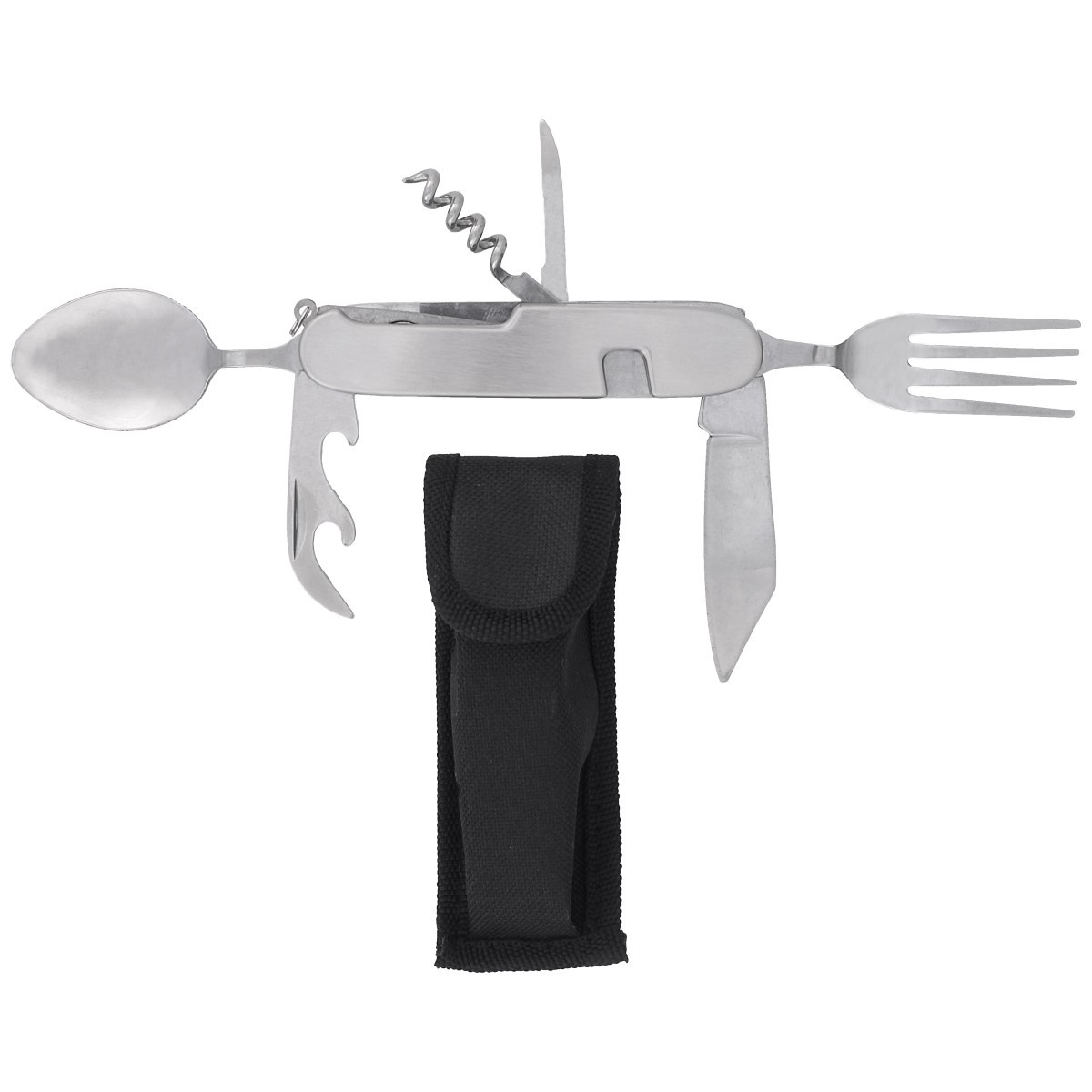 - Camping 7 Set Silver Aluminium, Mirror – kompaktowy niezbędnik turystyczny z siedmioma funkcjami, wykonany z aluminium i stali nierdzewnej 3Cr13MoV, wyposażony w etui z nylonu. Funkcjonalny zestaw do użytku w terenie i podróży.