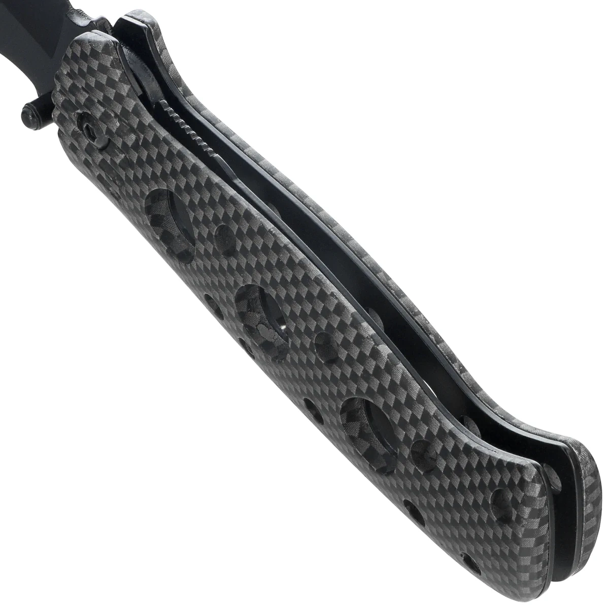 Głownia - typu drop point, wykonane ze stali nierdzewnej 7Cr17MoV, zapewnia dobre właściwości tnące i odporność na warunki atmosferyczne. Dzięki black titanium coating ostrze zyskuje zwiększoną odporność na zarysowania i efekt antyrefleksyjny. Mechanizm otwierania przy pomocy kołka w klindze umożliwia szybkie rozłożenie ostrza jedną ręką, a blokada liner lock zabezpiecza przed przypadkowym złożeniem w trakcie pracy. Geometria ostrza została zoptymalizowana pod kątem uniwersalnych zadań EDC – od prostych cięć po działania techniczne i awaryjne. Kompaktowe wymiary i składana forma czynią ten model idealnym do codziennego noszenia.
