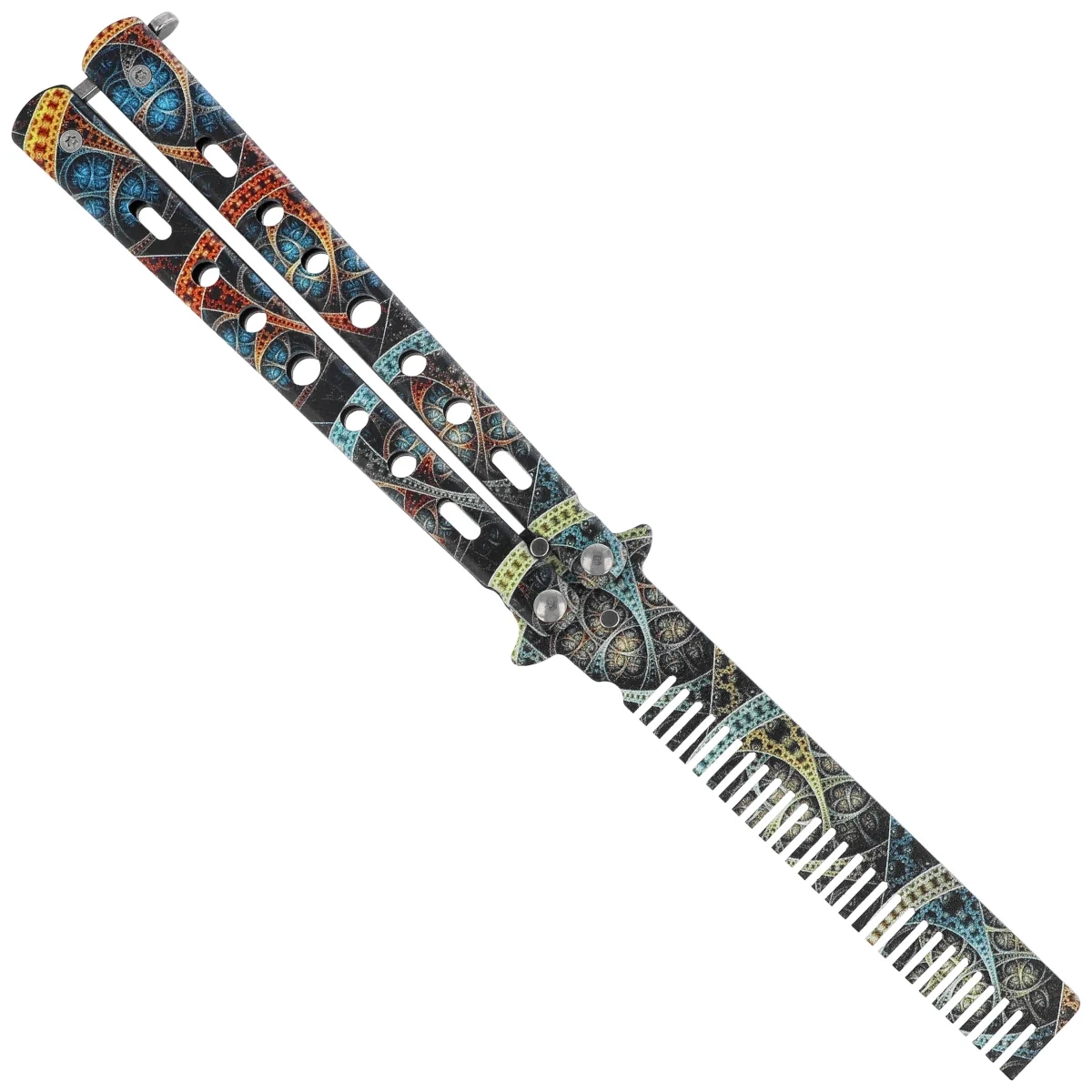 Nóż składany motylek Third Decor Habitat Balisong K3101 3D Poker Skull Print 420, Comb-Style Blade 420 (TH-K3101)
