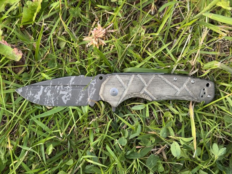 Głownia - o profilu drop point zapewnia wysoką wszechstronność użytkową — od precyzyjnego cięcia po prace wymagające dużej kontroli nad głębokością cięcia. Zastosowana stal Niolox łączy wysoką odporność na ścieranie, długotrwałą stabilność krawędzi tnącej oraz odporność na korozję, zachowując jednocześnie relatywną łatwość ostrzenia w warunkach terenowych. Twardość na poziomie 59–61 HRC zapewnia wysoką żywotność ostrza w codziennym użytkowaniu. Powierzchnię głowni wykończono metodą acid washed, nadając jej surowy, użytkowy wygląd oraz zwiększoną odporność na mikrozarysowania i odbicia świetlne. Otwarcie noża odbywa się za pomocą płynnie pracującego flippera na łożyskach, co pozwala na błyskawiczne i bezpieczne rozłożenie ostrza jedną ręką. Na grzbiecie zastosowano karbowane oparcie pod kciuk (jimping), poprawiające stabilność chwytu podczas precyzyjnych prac. Całość blokowana jest solidnym mechanizmem liner lock, zapewniającym pewne unieruchomienie ostrza w pozycji roboczej.