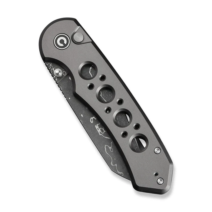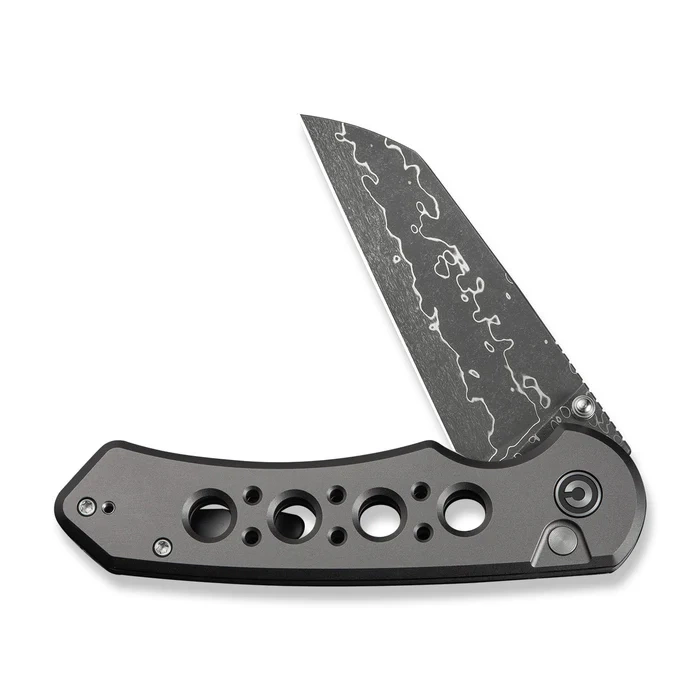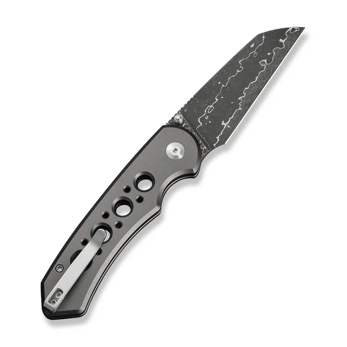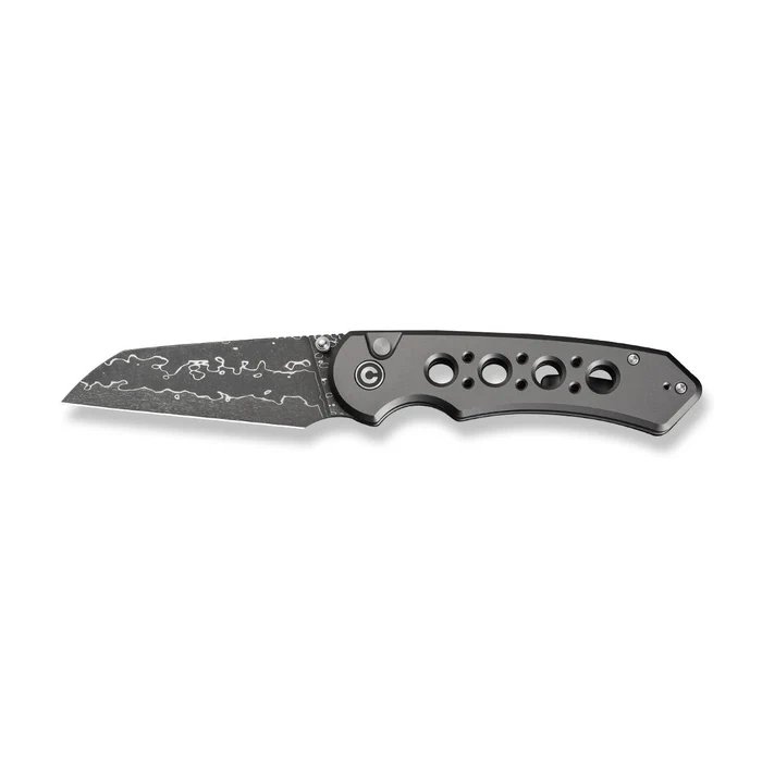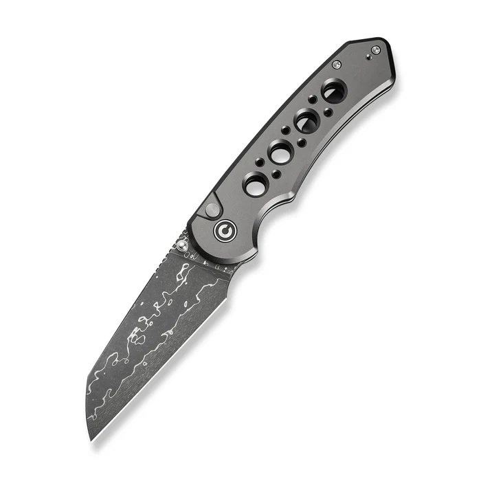 - Pragma Prime Gray Aluminium, Damascus – smukły folder Civivi EDC z głownią ze stali Damascus o profilu Wharncliffe, wygodna rękojeść z aluminium, intuicyjna blokada button lock. Ergonomia i precyzja wykonania w kompaktowej formie.