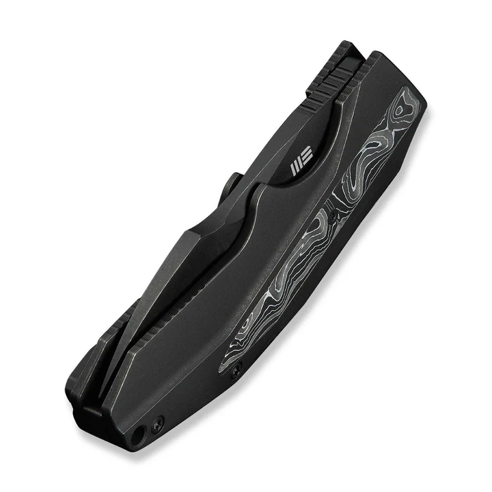 Rękojeść - wykonano z frezowanego tytanu 6Al-4V, zapewniającego wysoką sztywność, odporność mechaniczną i lekkość. Główne panele wzbogacono o wkładki z unikalnego kompozytu Aluminium Foil Carbon Fiber, oferującego trójwymiarowy efekt optyczny i podwyższoną przyczepność powierzchni w każdych warunkach. Delikatne profilowanie krawędzi oraz ergonomiczne podcięcia pod palce wspierają komfort i kontrolę pracy nawet przy dłuższym użytkowaniu w środowisku terenowym lub EDC. Konstrukcję wzmacnia precyzyjnie spasowany backspacer oraz klips typu deep-carry tip-up, umożliwiający dyskretne i stabilne przenoszenie noża w kieszeni. Całość utrzymana została w eleganckiej, minimalistycznej estetyce, łączącej nowoczesną inżynierię z najwyższą kulturą wykonania typową dla projektów Cecchiniego w linii premium WeKnife.
