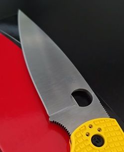 Głownia - ostrze gładkie Plain wyprowadzone szlifem pełnym płaskim (Full Flat Grind). Okrągłe wycięcie SpyderHole (patent Spyderco) do oburęcznego otwierania kciukiem. Dopracowany, precyzyjnie obrobiony mechanizm blokady głowni Back-Lock gwarantuje niezwykłą płynność działania. Karbowane oparcie pod kciuk (upper jimping) na grzbiecie klingi oraz Finger Choil (podcięcie pod palec wskazujący między rękojeścią a krawędzią tnącą) ułatwiają panowanie nad nożem.